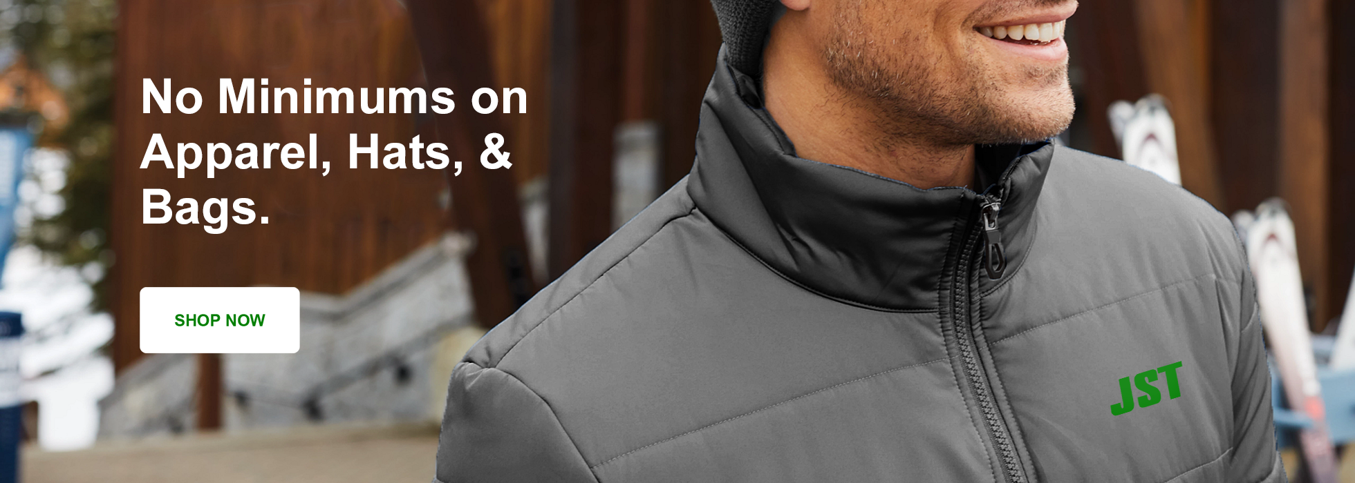 - We have a great selection of apparel, hats, and bags available in single quantities.