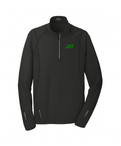 Stay-cool wicking ultra-breathable flatlock seams for comfort reflective details. 5.6-ounce, 88/12 poly/spandex jersey body. 4.1-ounce, 92/8 poly/spandex mesh panels. Reflective taping at zipper and back panel.